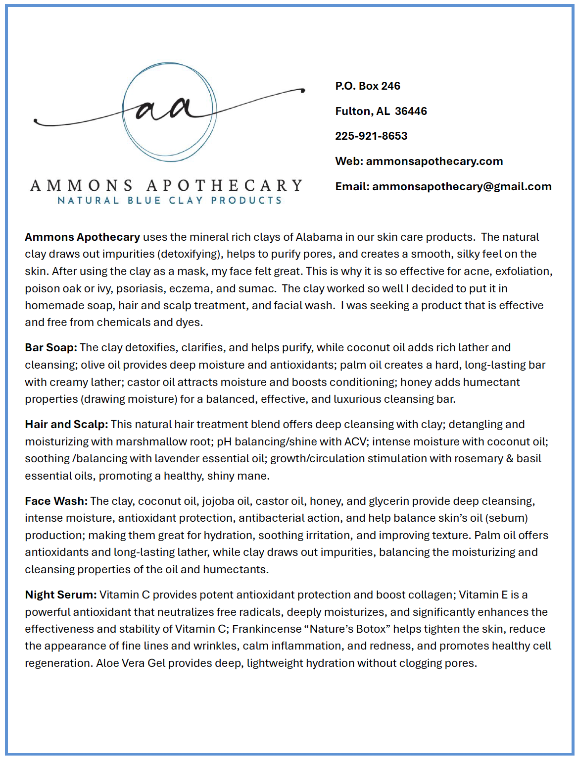 Our blue clay is hand-harvested by our family in Fulton, Alabama. We carefully collect, mix, and jar the clay on-site to preserve its natural purity and ensure every batch is crafted with care.